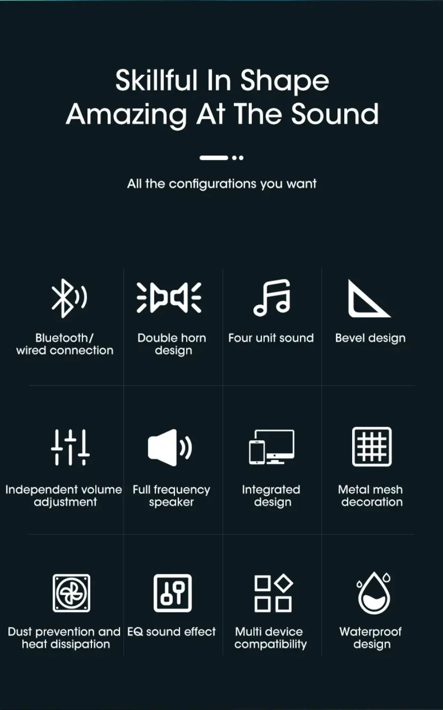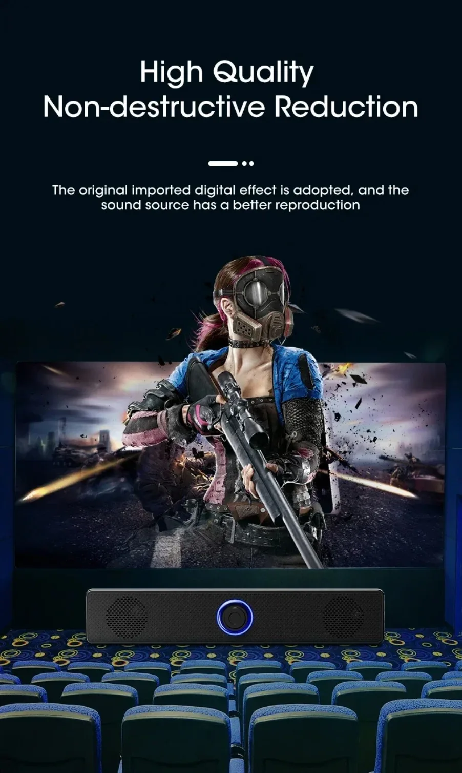 • Alimentado por USB:Esta barra de som é alimentada por USB, garantindo uma operação fácil e conveniente sem a necessidade de fiação ou fontes de alimentação adicionais.